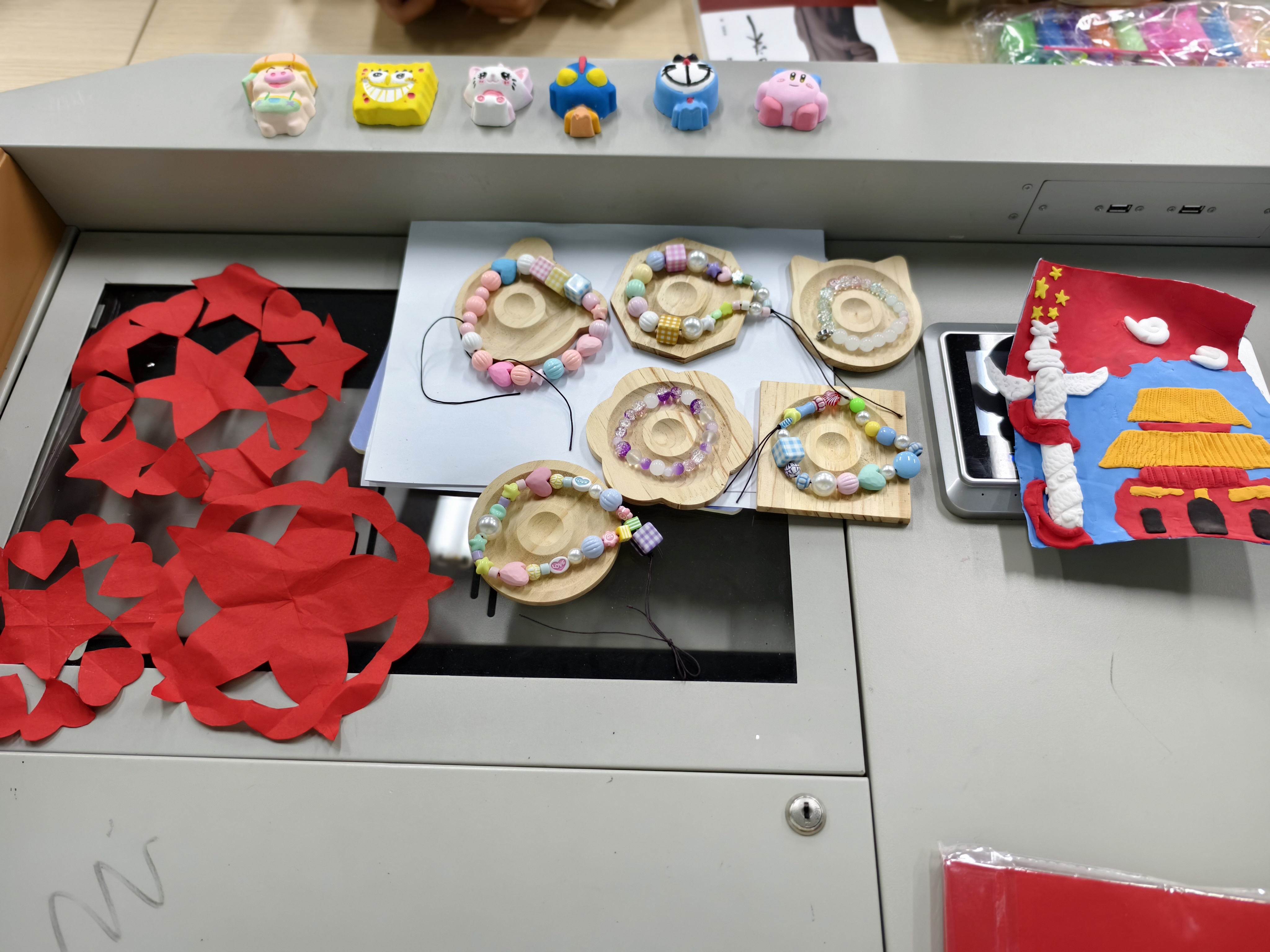 接下来的手工创作环节则充满巧思与温度,同学们可自由选择项目参与。或用黏土精心捏制出天安门造型,寄托对祖国的热爱;或挥毫写下“为中华之崛起而读书”的标语,致敬总理的远大抱负;还有人用红纸剪出星星、花朵,传递美好期许,串珠、拼图等项目也为活动增添了不少趣味性,大家都在实践中诠释着对恩来精神的理解。