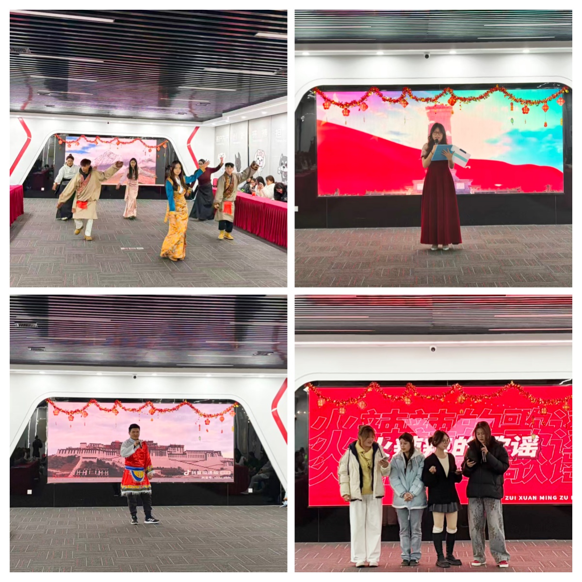 活动环节丰富有序,成效显著。研读党报环节中,社团成员在活动中,学习时政要闻,同时通过《读周恩来传》读书的vlog,结合周恩来总理事迹,分享感悟,于文字间重温初心、汲取奋进力量。红色文化表演精彩纷呈,红色主题朗诵深情缅怀革命先辈。身着特色服饰的锅庄舞表演则展现浓郁民族风情,增进了多民族同学的情感联结。